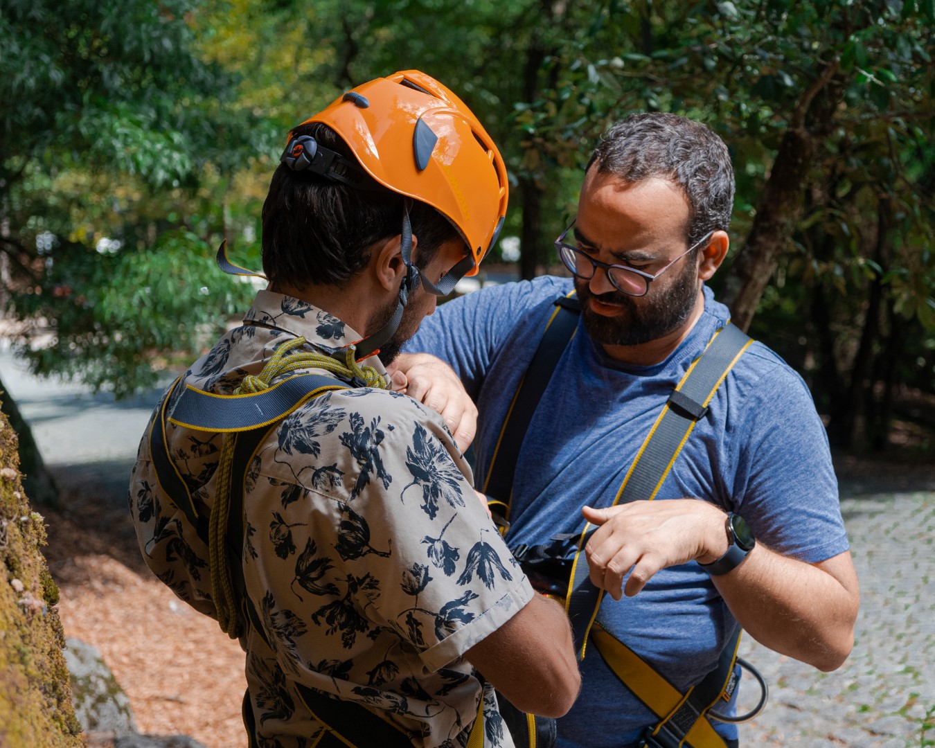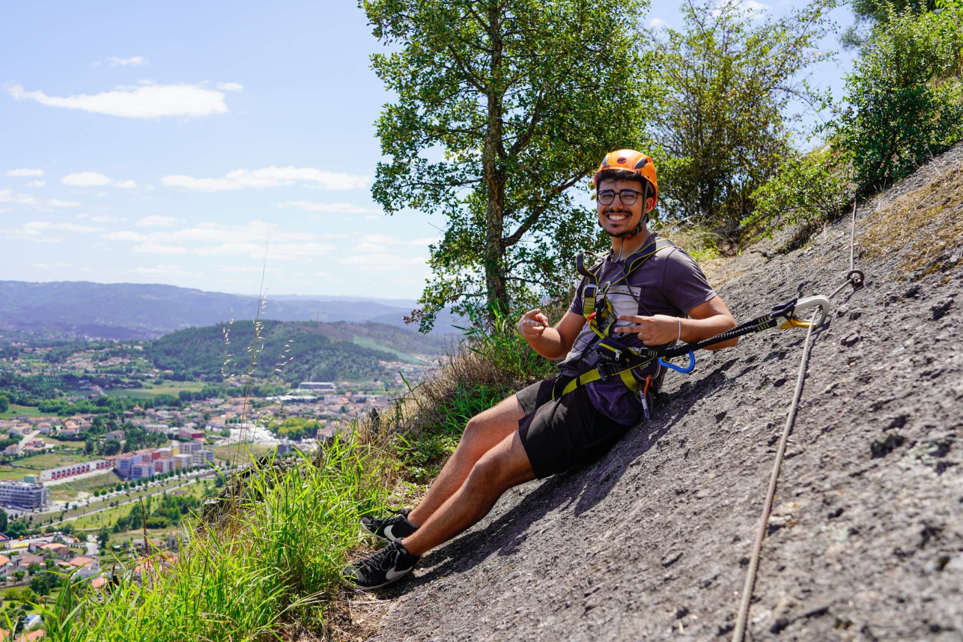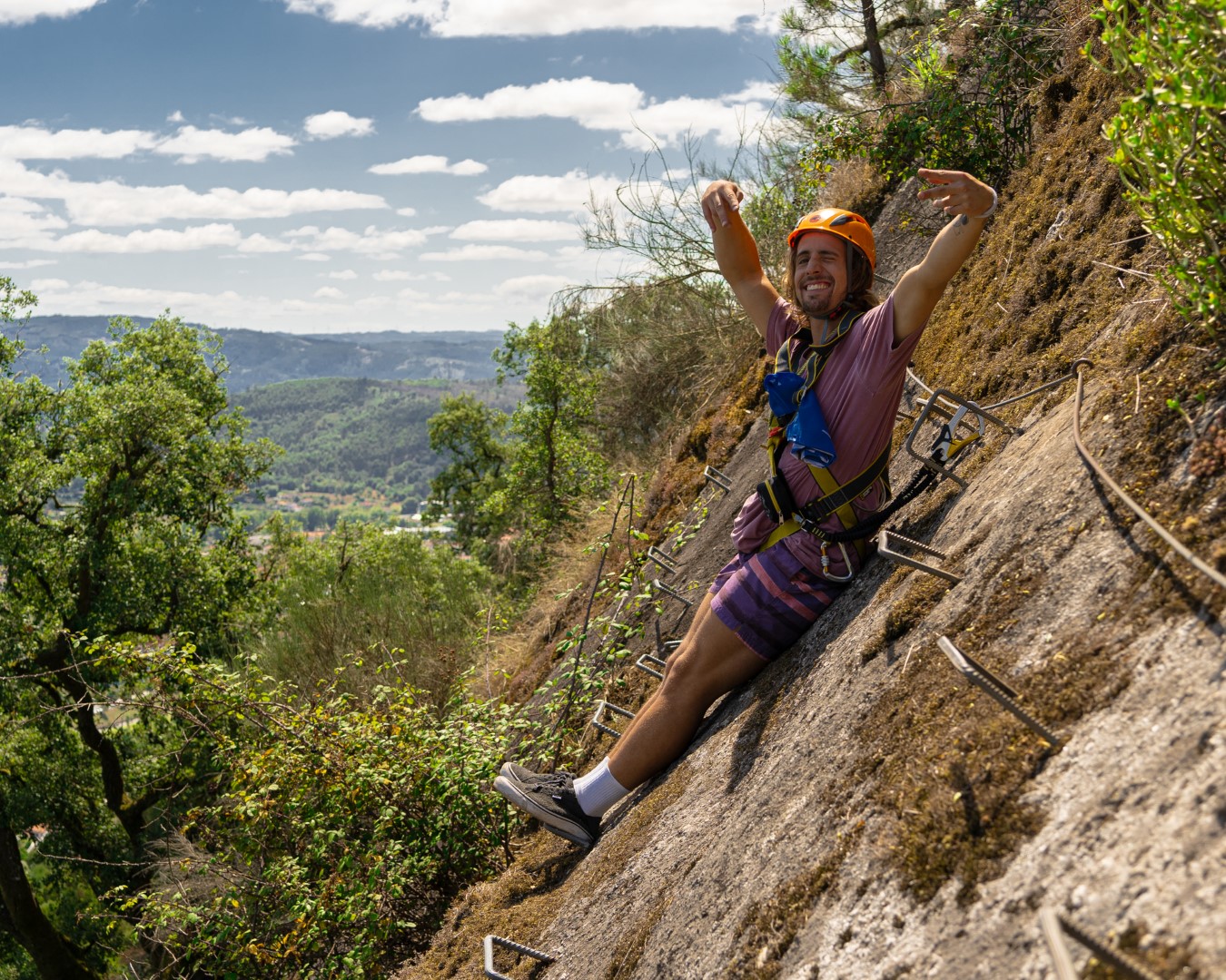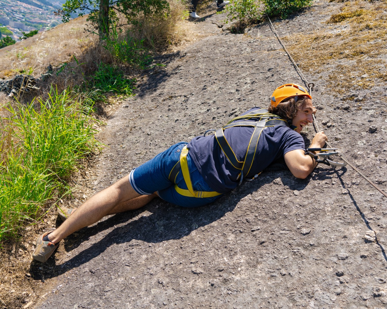The conditions were perfect to learn about and practice safety measures. After a short introduction on equipment and basic safety rules by instructor Rui Pereira, we got to practice prusik looping with the thinner cable giving us an extra level of difficulty. Via Ferrata is about challenging your fears and limitations, so even though some of our participants had to overcome a certain fear of heights, we can proudly say that everybody made it to the end without any issues, in what was a very relaxed, active day spent in nature.