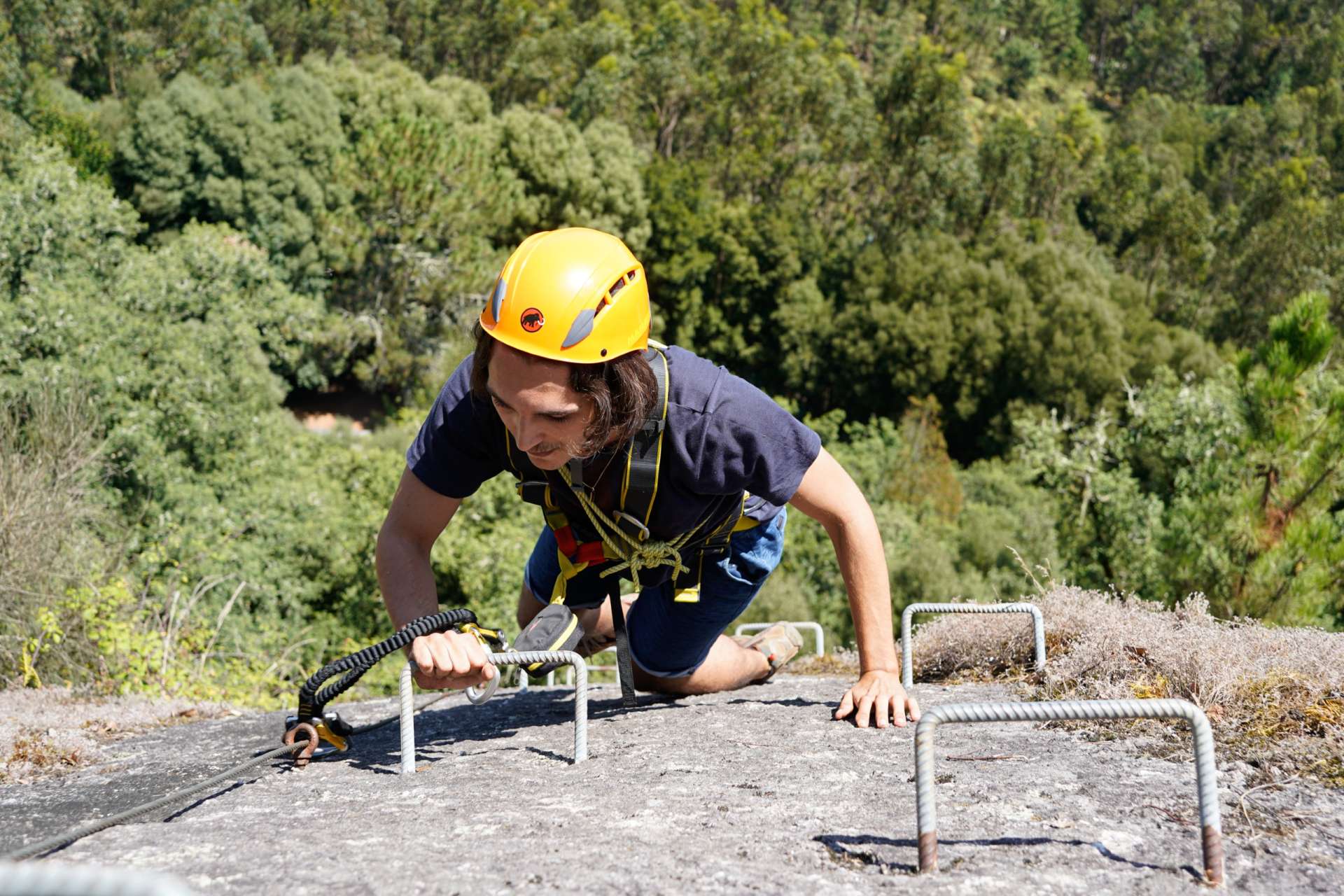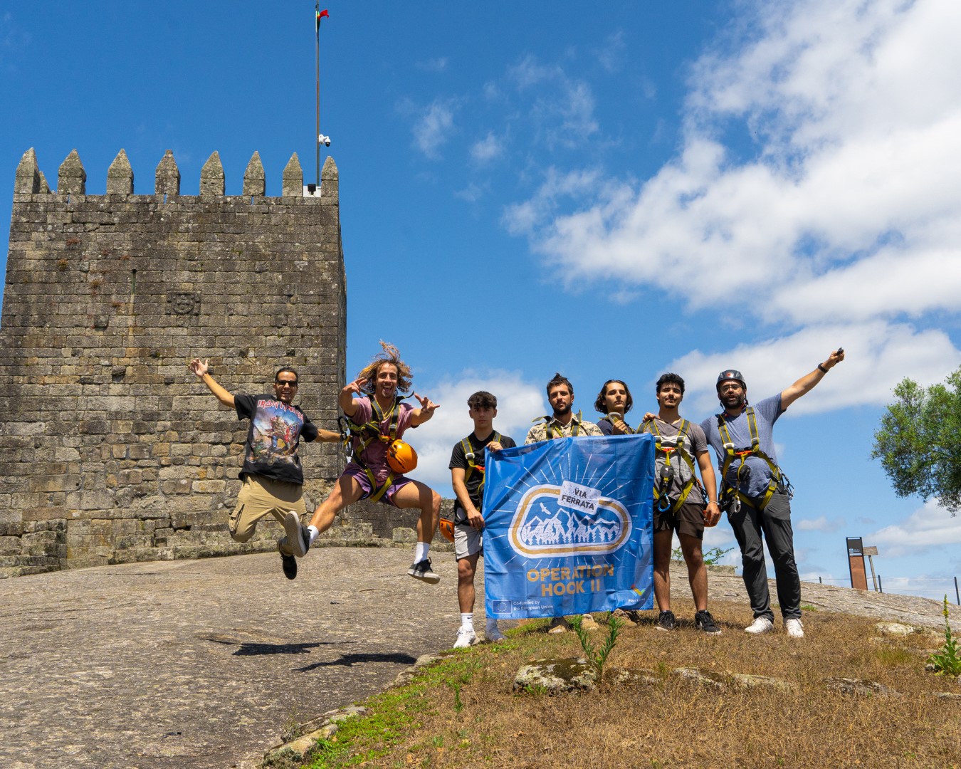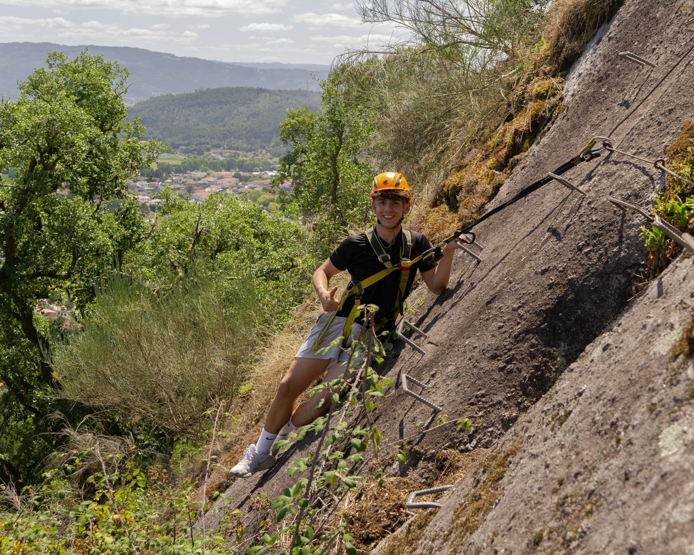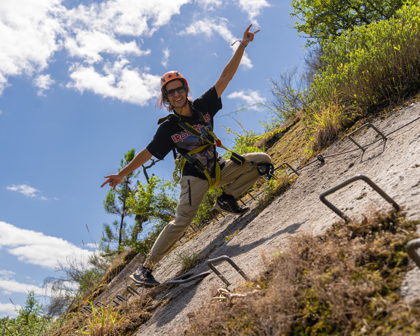 In the first ferrata ever setup in Portugal, our group set out on a great adventure. The weather couldn’t have been better: clear skies, not too hot considering it was mid-summer in Portugal. Being an old installation of Via Ferrata it was characteristic due to the thinner life rope. The perfect opportunity to practice our adaptability to different settings. However, the Via Ferrata was at an easy level, with not so serious obstacles.