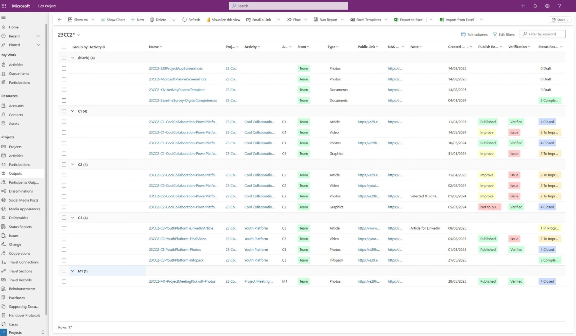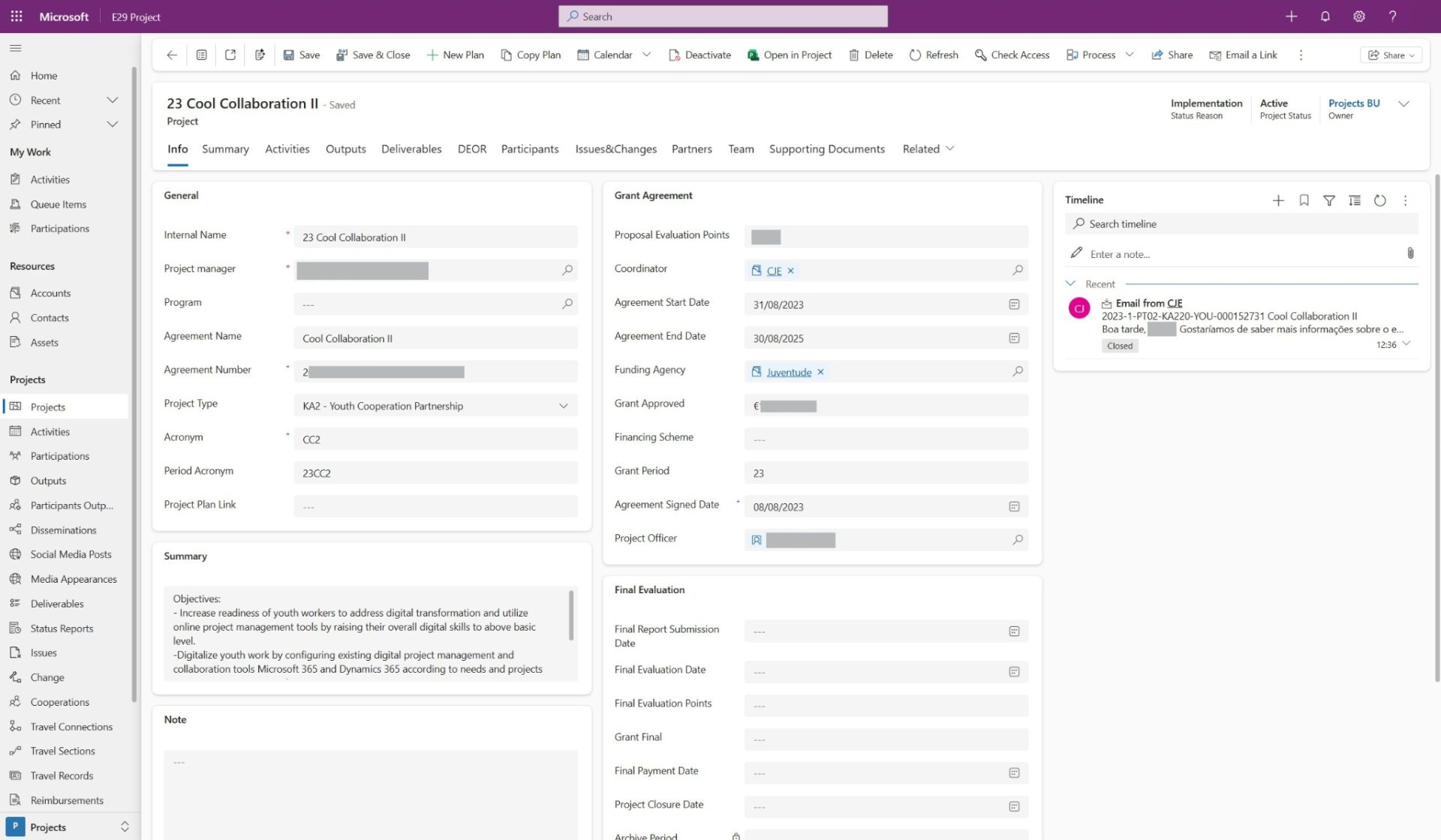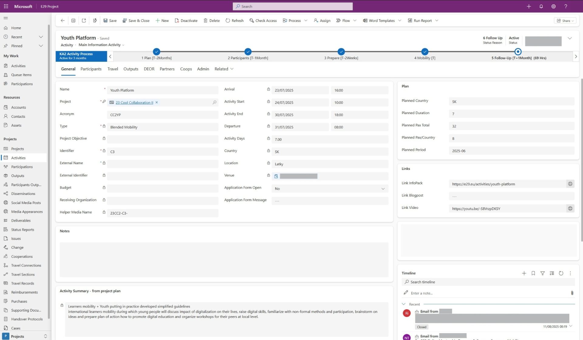 The digital project management and collaboration tools, Microsoft 365 and Dynamics 365 were configured and integrated in the youth work of all members of the E29 network, assuring all youth workers digitalize their tasks or manage them digitally.