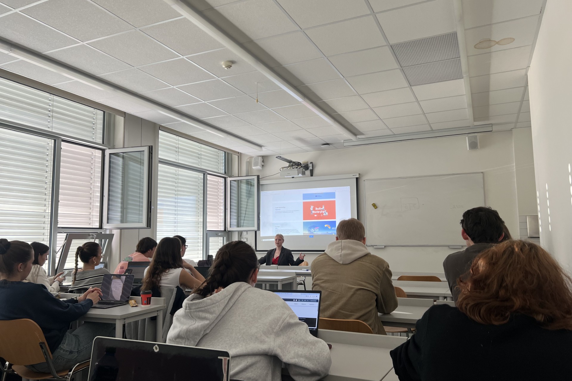 Dissemination held by Sofiia Oliinyk at Prague University of Economics and Business, for 13 people. She gave a presentation about the project and showed the final video. Firstly, she talked about the formal part of the project and what they did during it. Then she explained the purpose of such projects. After that, she gave instructions on who can apply for the project and how to do it. In the end she held a Q&A session.