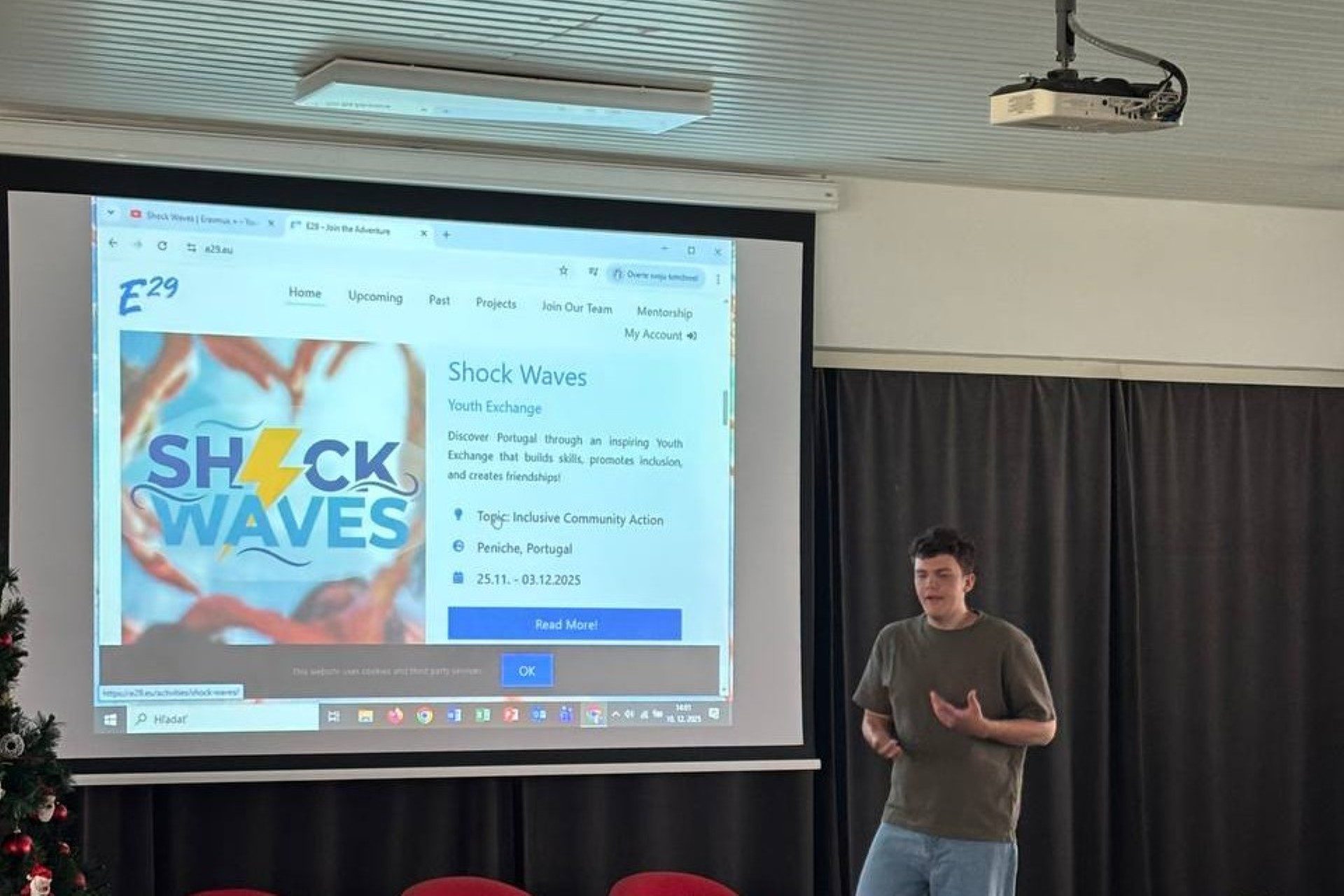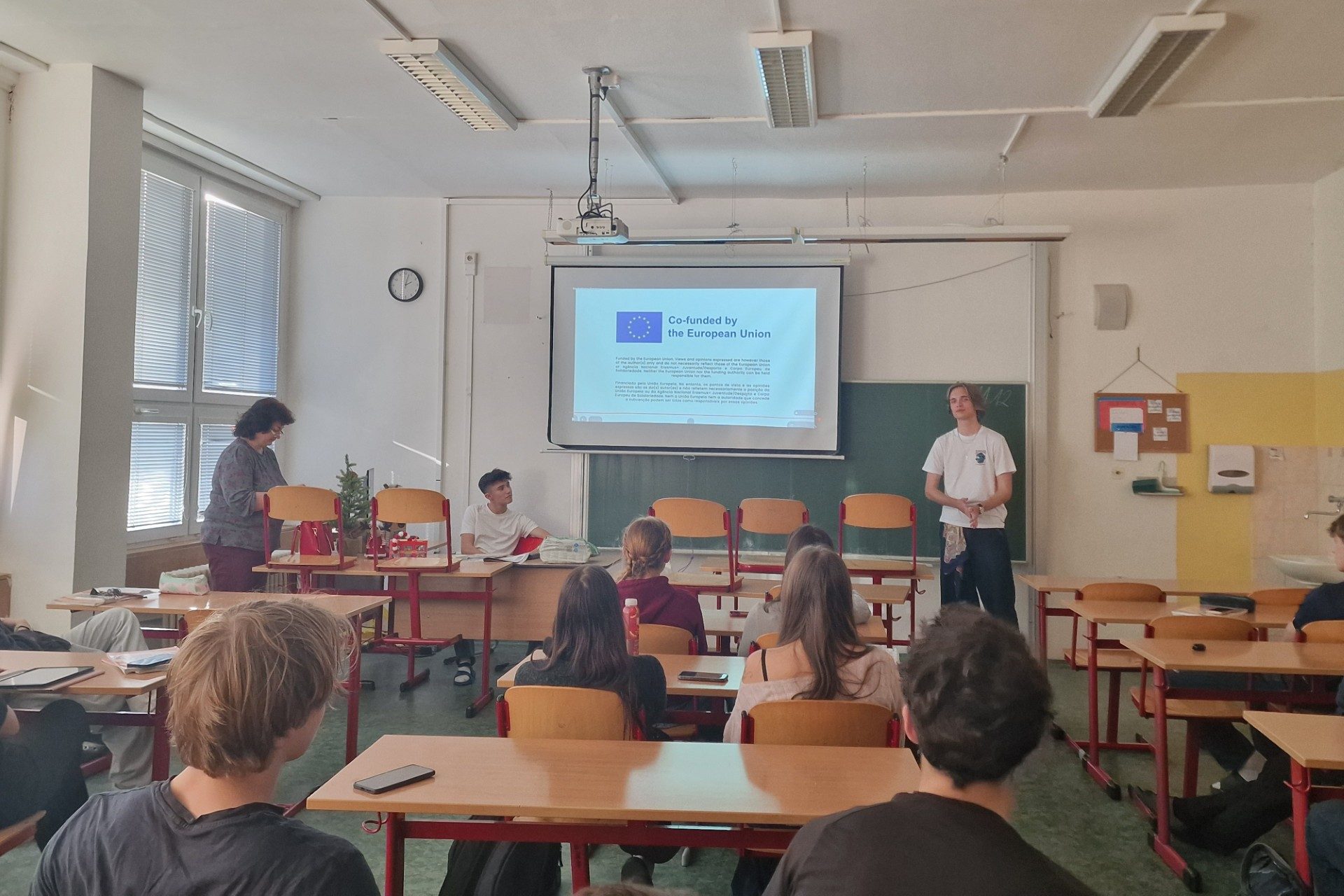 Dissemination held by Krystof Horejs at Sportovni Gymnazium Kladno, for 20 people. He created and presented a slideshow explaining how a youth exchange works and what participants learned during the activity. He also showed where to find other opportunities on the E29 website, recommended following E29 on Instagram, and answered questions about the project’s organization and daily routine.