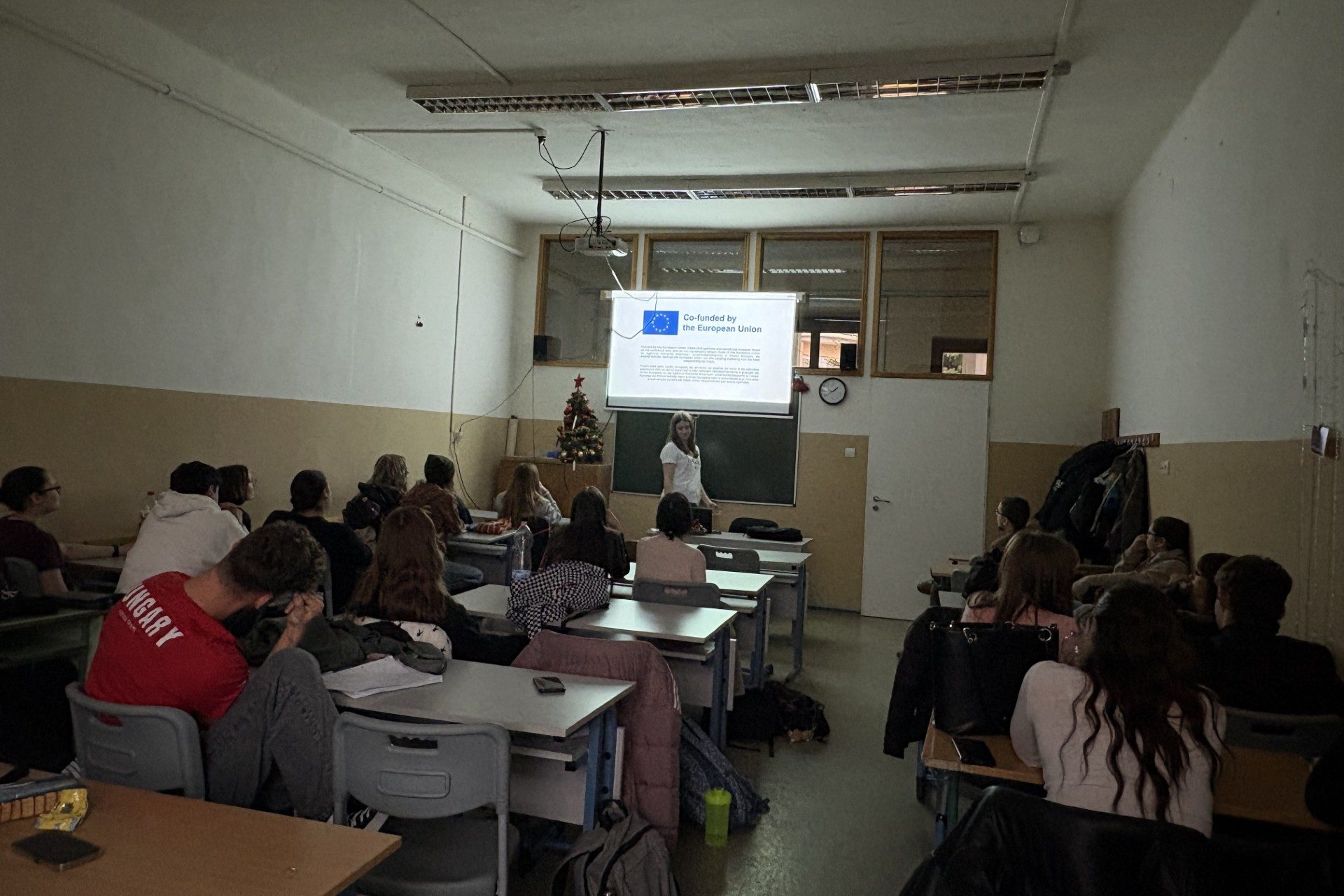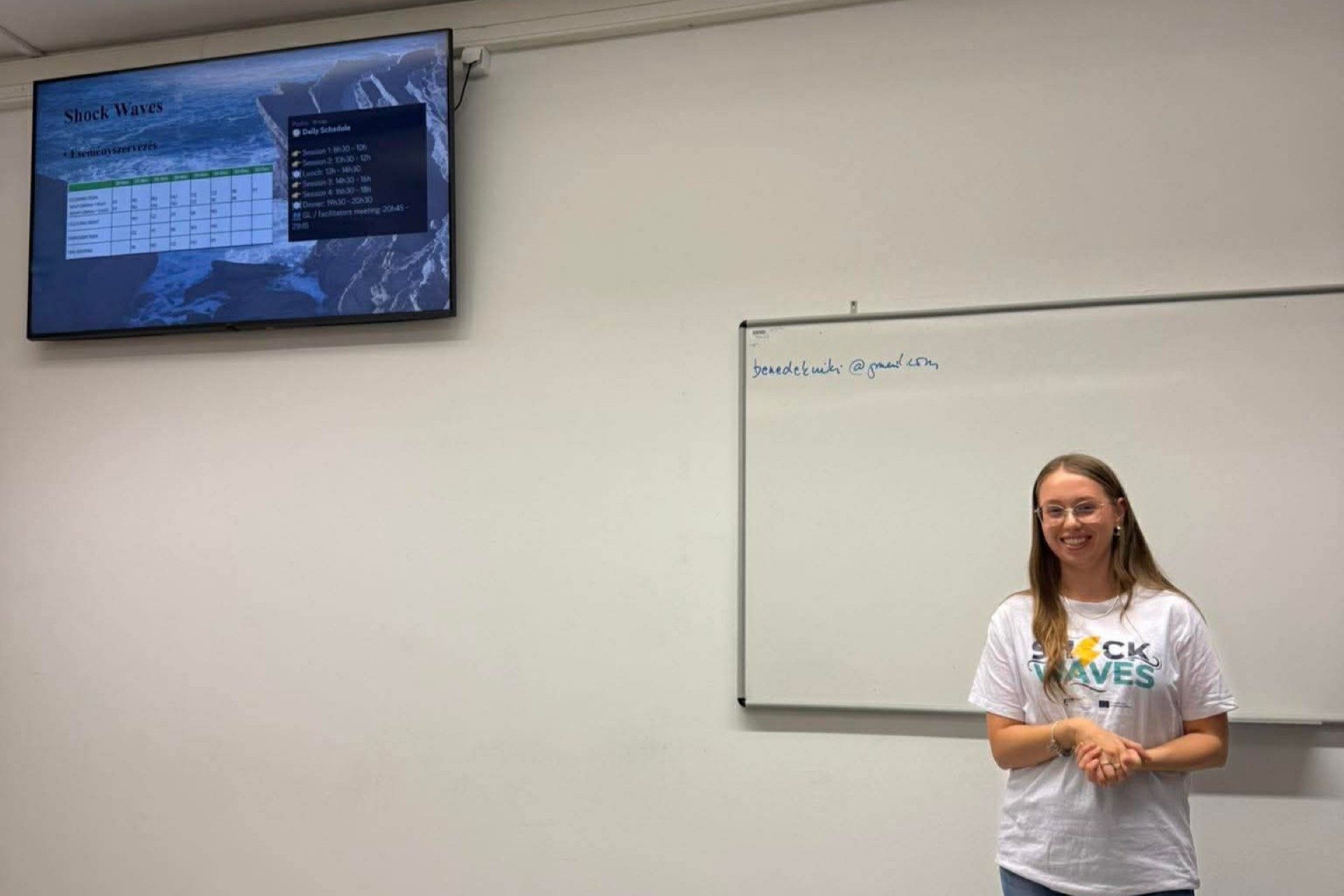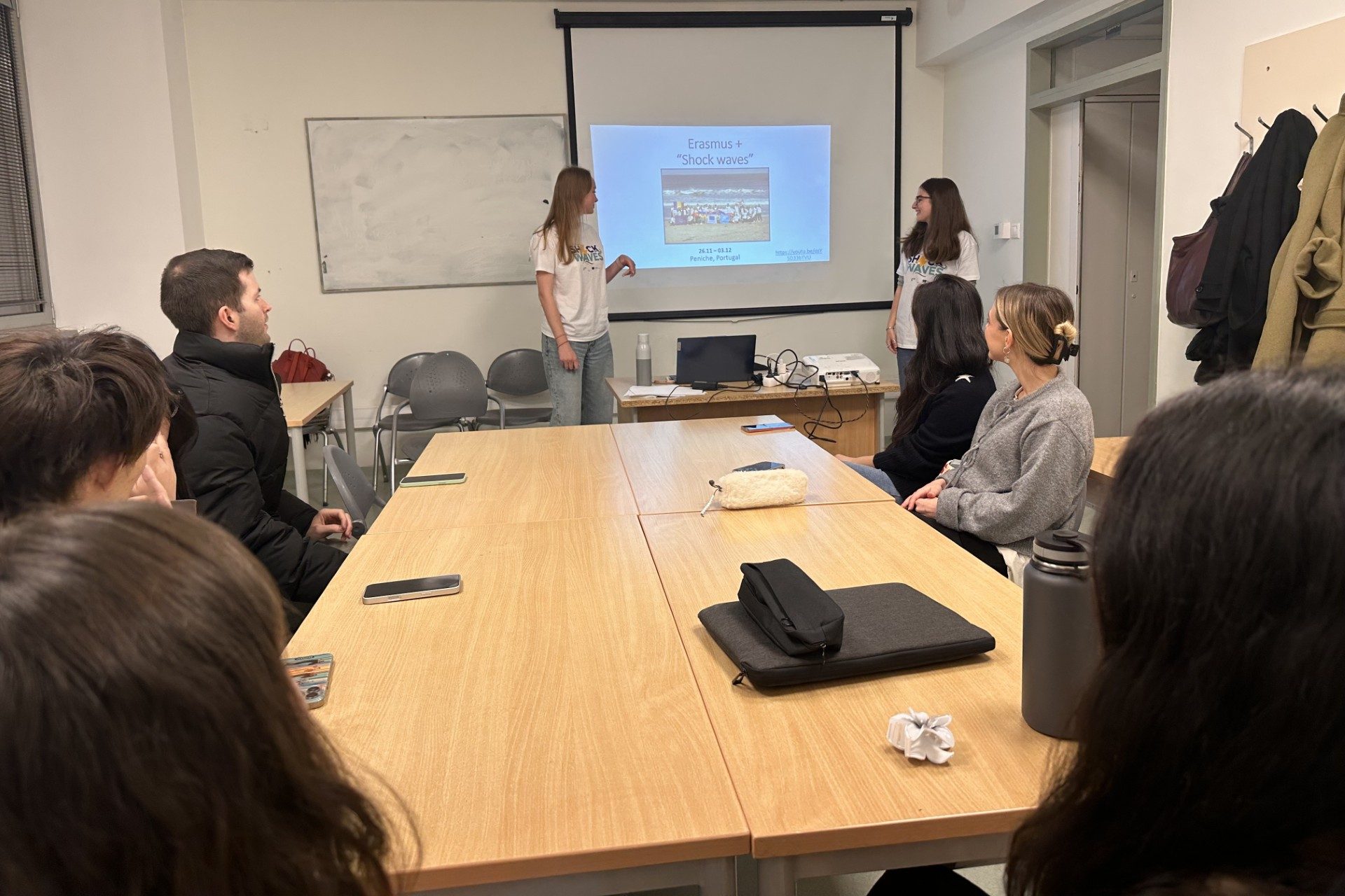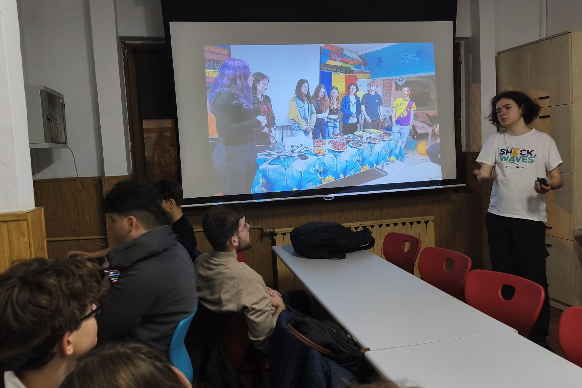 Dissemination held by Luca Kappelmayer at Rackeve Ady Endre Gimnazium, for 20 people. She presented a PowerPoint she had created to her class, discussing the Shock Waves activity. She explained why she recommends the Erasmus+ programme and described how her classmates could apply for it. After the presentation, she showed the project’s final video.