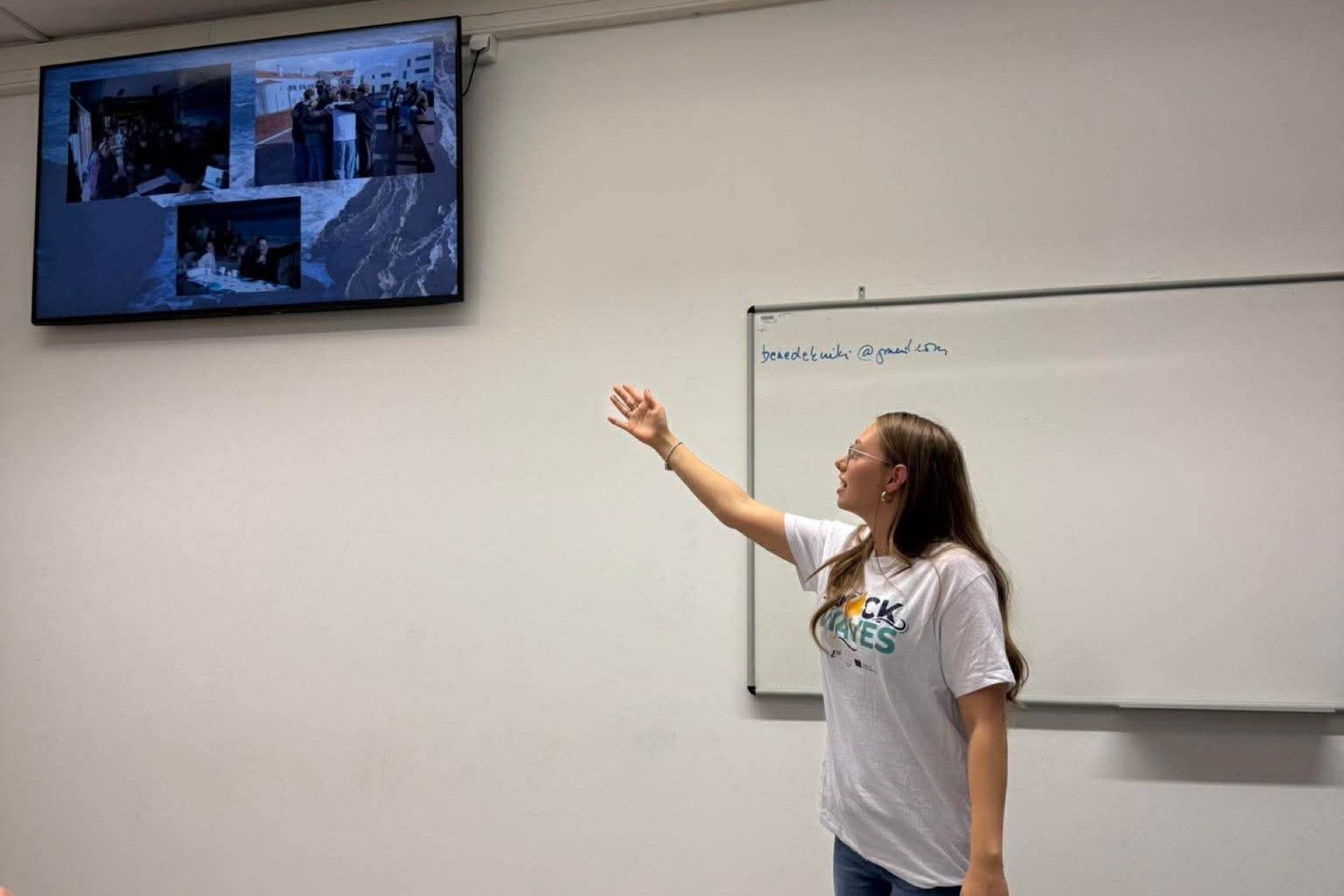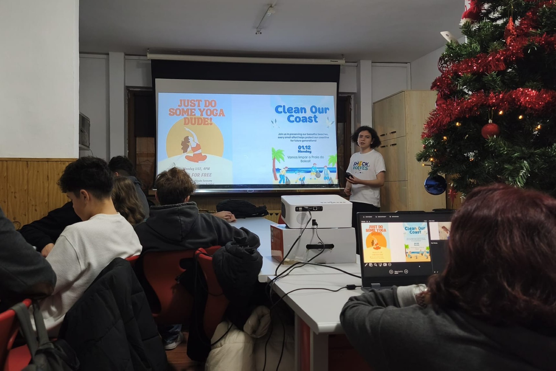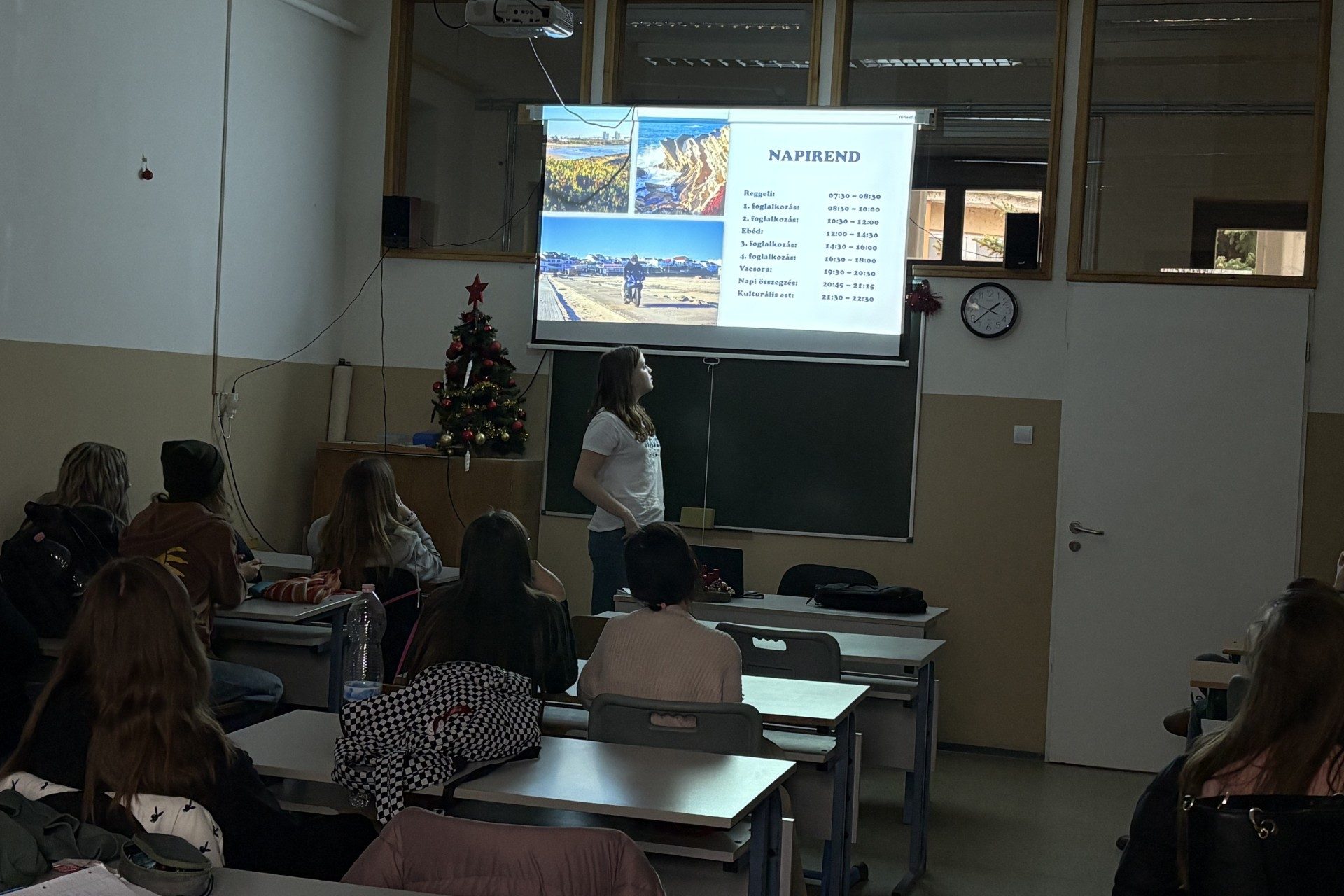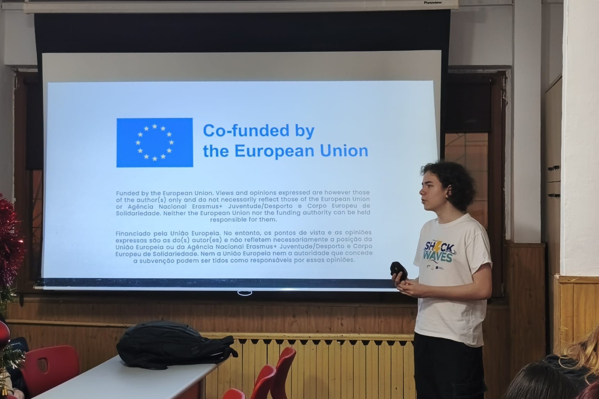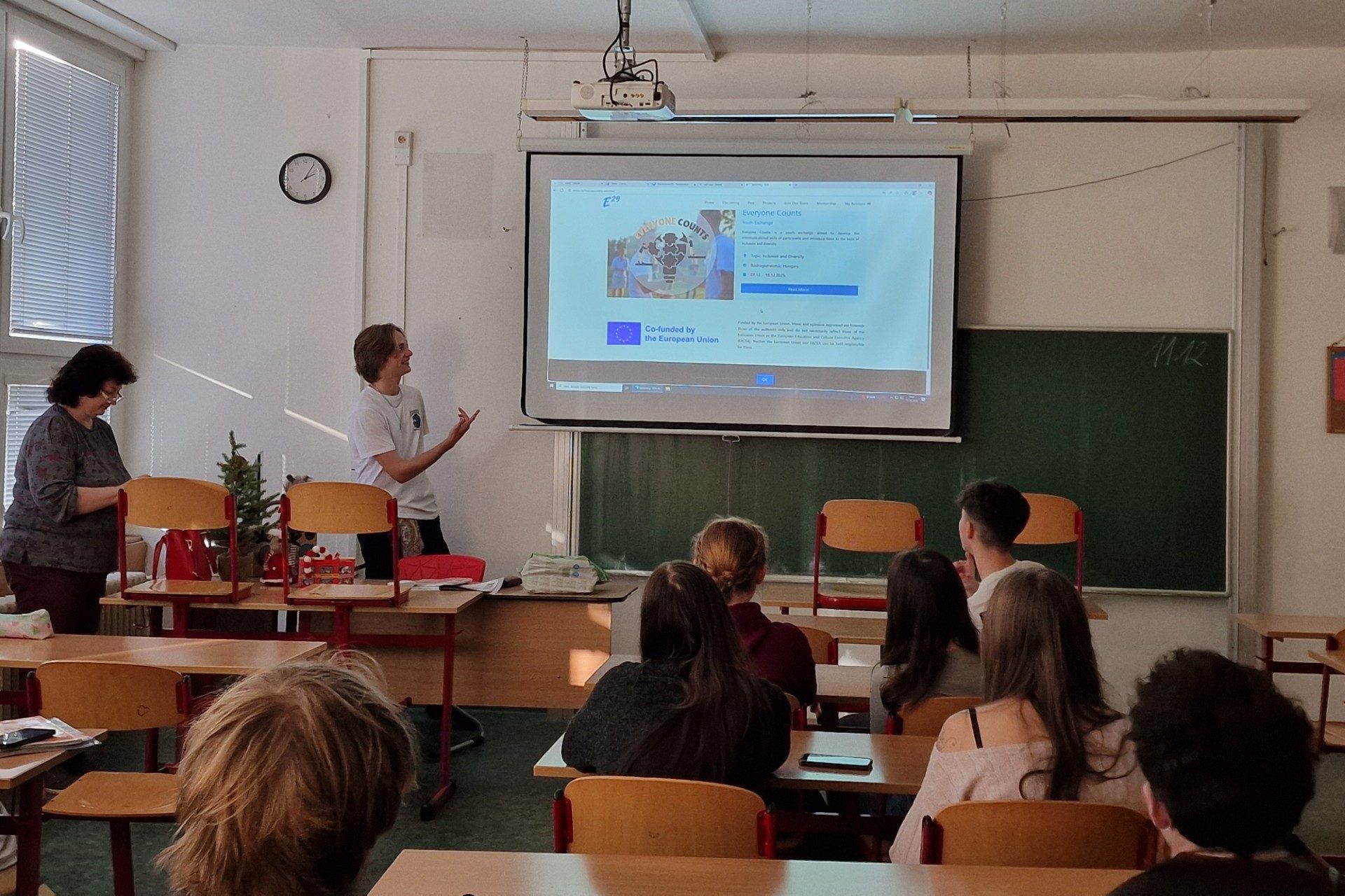 Dissemination held by Luca Kappelmayer at Rackeve Ady Endre Gimnazium, for 20 people. She presented a PowerPoint she had created to her class, discussing the Shock Waves activity. She explained why she recommends the Erasmus+ programme and described how her classmates could apply for it. After the presentation, she showed the project’s final video.