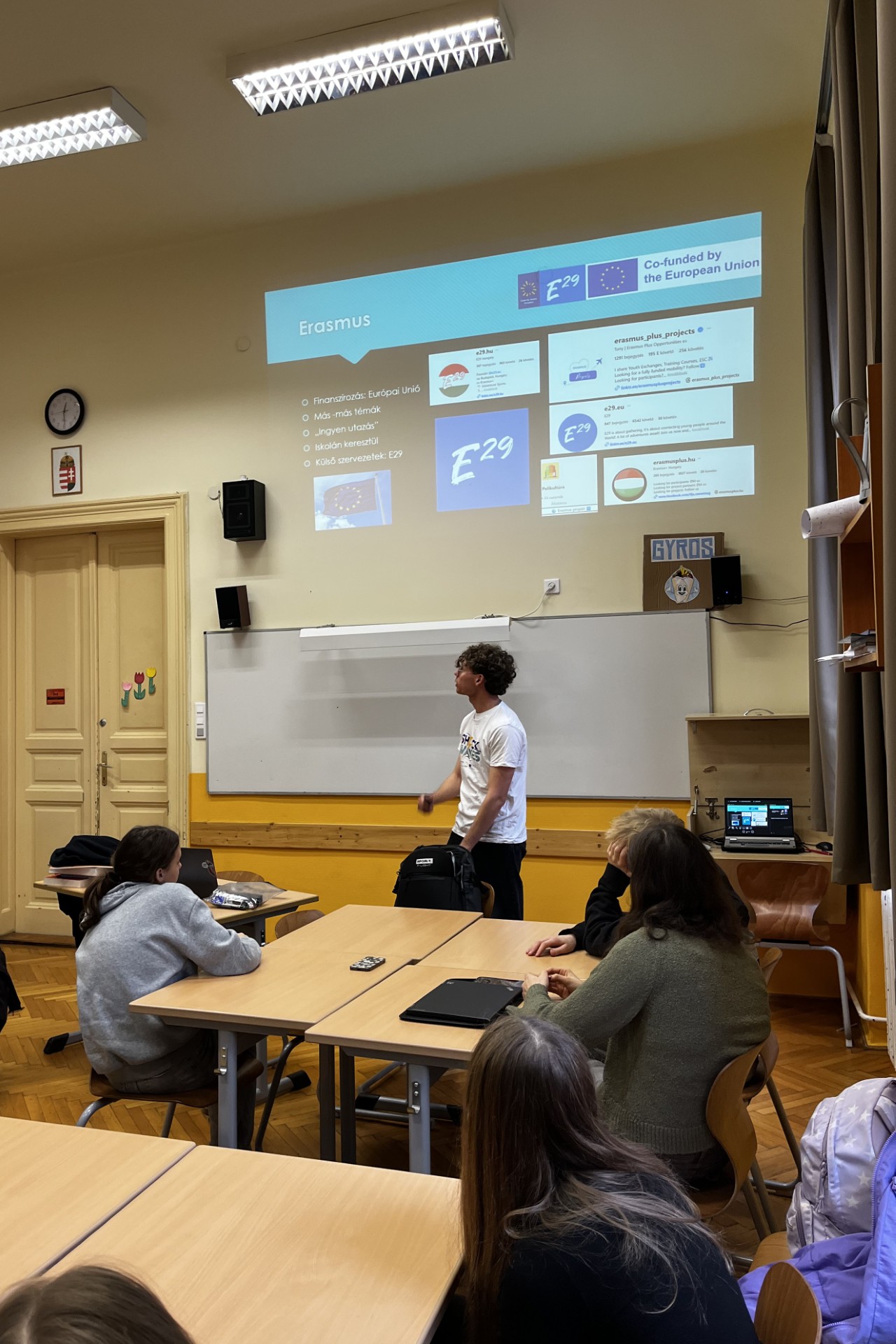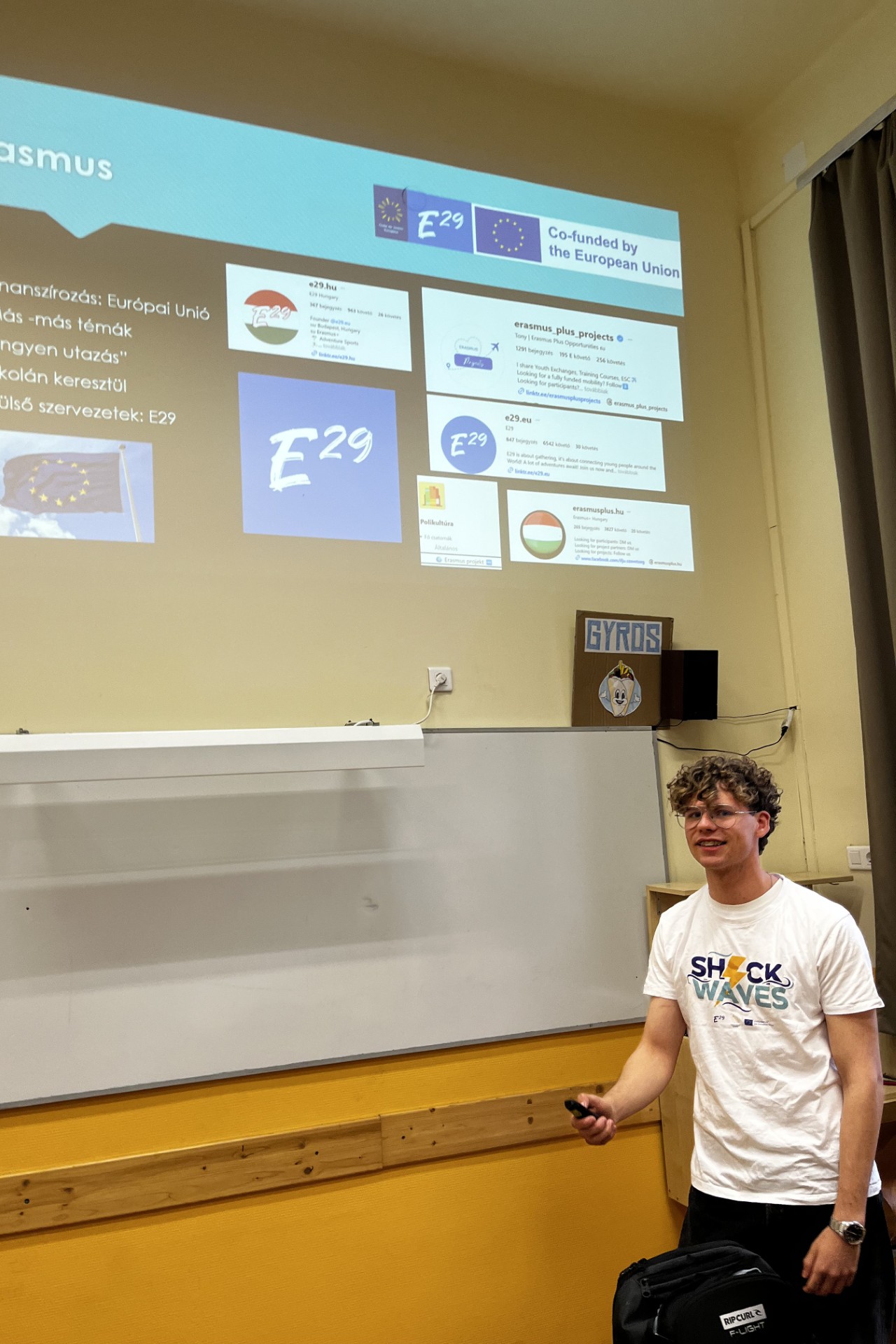 Dissemination held by Aron Bartus at Kozgazdasagi Politechnikum Alternative High School, for 25 people. He prepared a presentation for 8th grade. The goal was to show them how to apply for Erasmus+ projects, talk about the E29 organization and aslo about the Shock Waves activity.