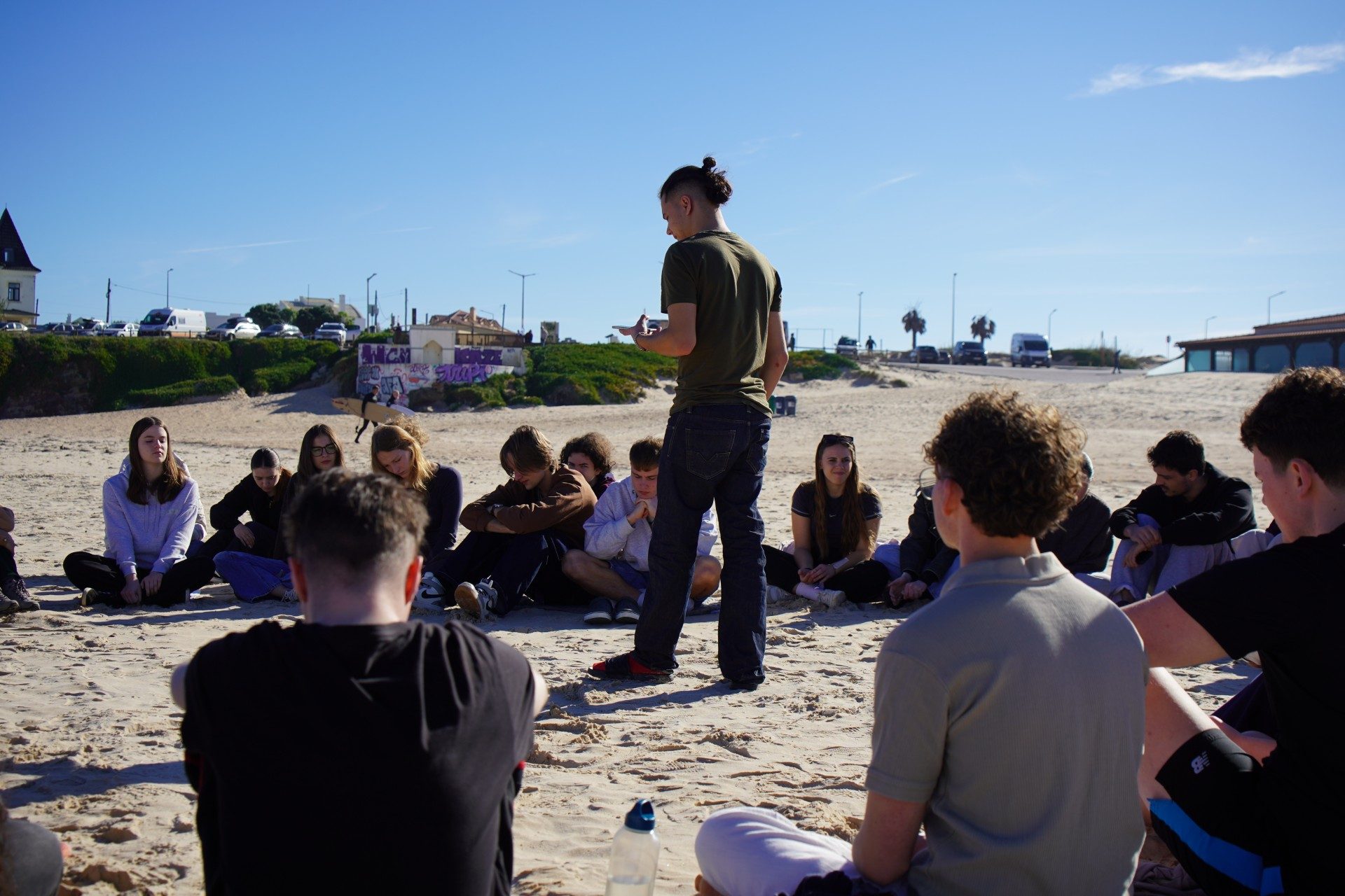 On the second day, participants reflected on their own communities. During a reflective meditation on the beach, they considered the places they came from, the people who influenced them, and the challenges they face in everyday life. Afterwards, they explored Peniche’s local community more actively. By conducting inspiring interviews with locals and discovering beautiful spots along the ocean, they gained a deeper understanding of the town and its surf culture.