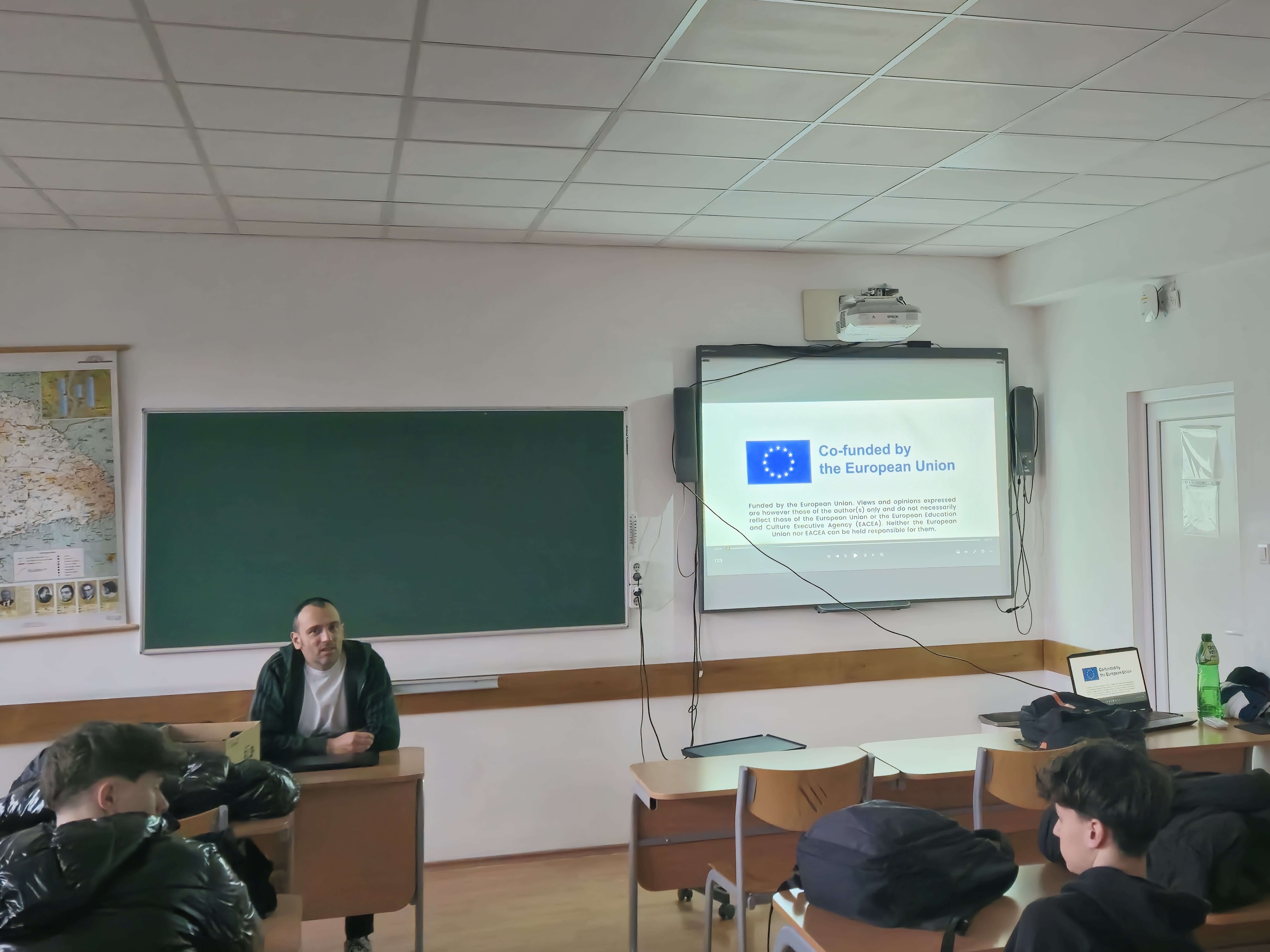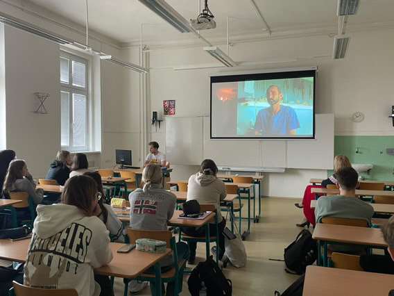 Jan Šimeček gave a presentation to his class of 25 students, sharing his experience in the ‘Young People in Action’ activity. He talked about how the group created a short film while engaging with the local community, highlighting both the creative process and the impact of the experience.