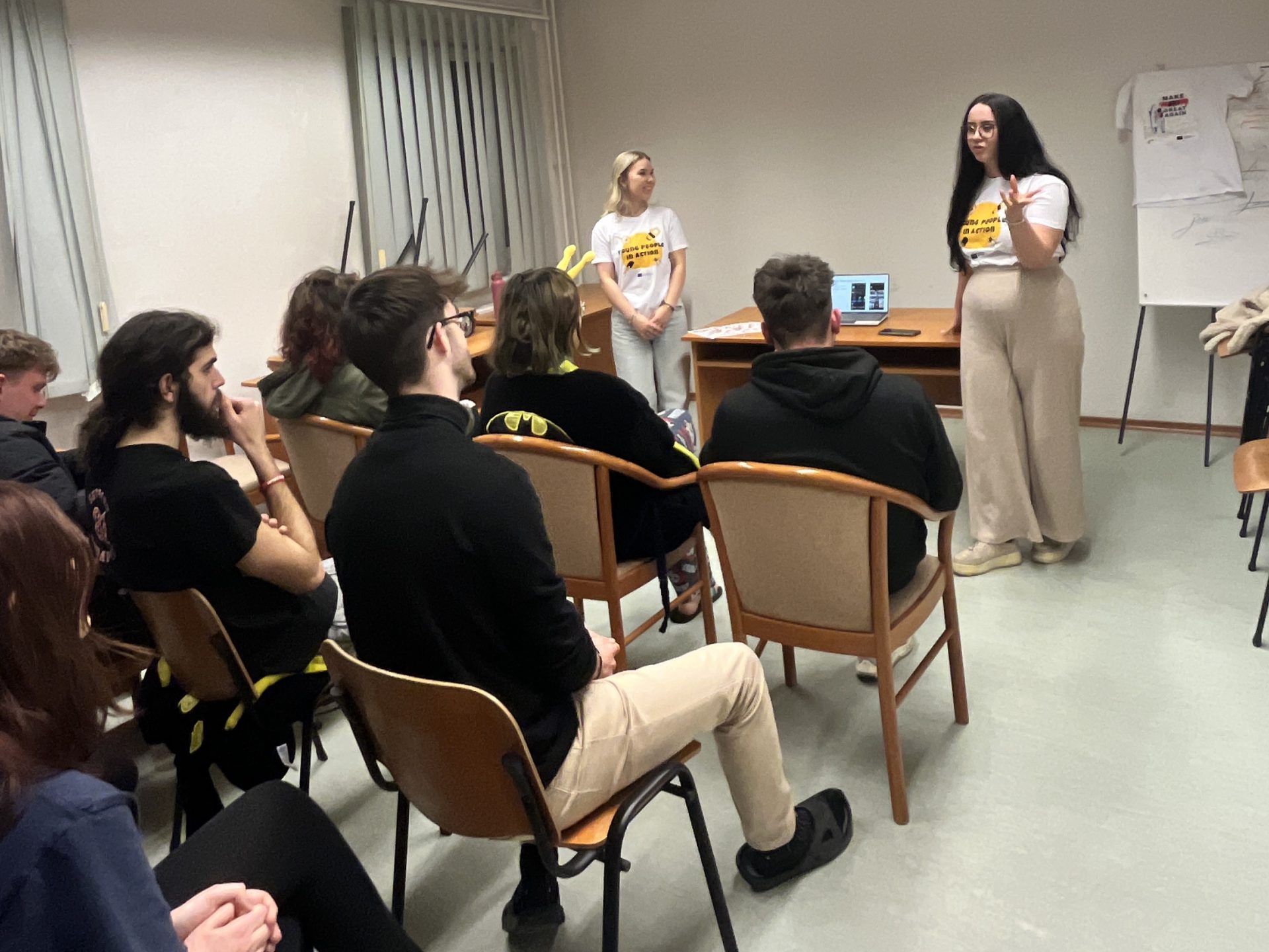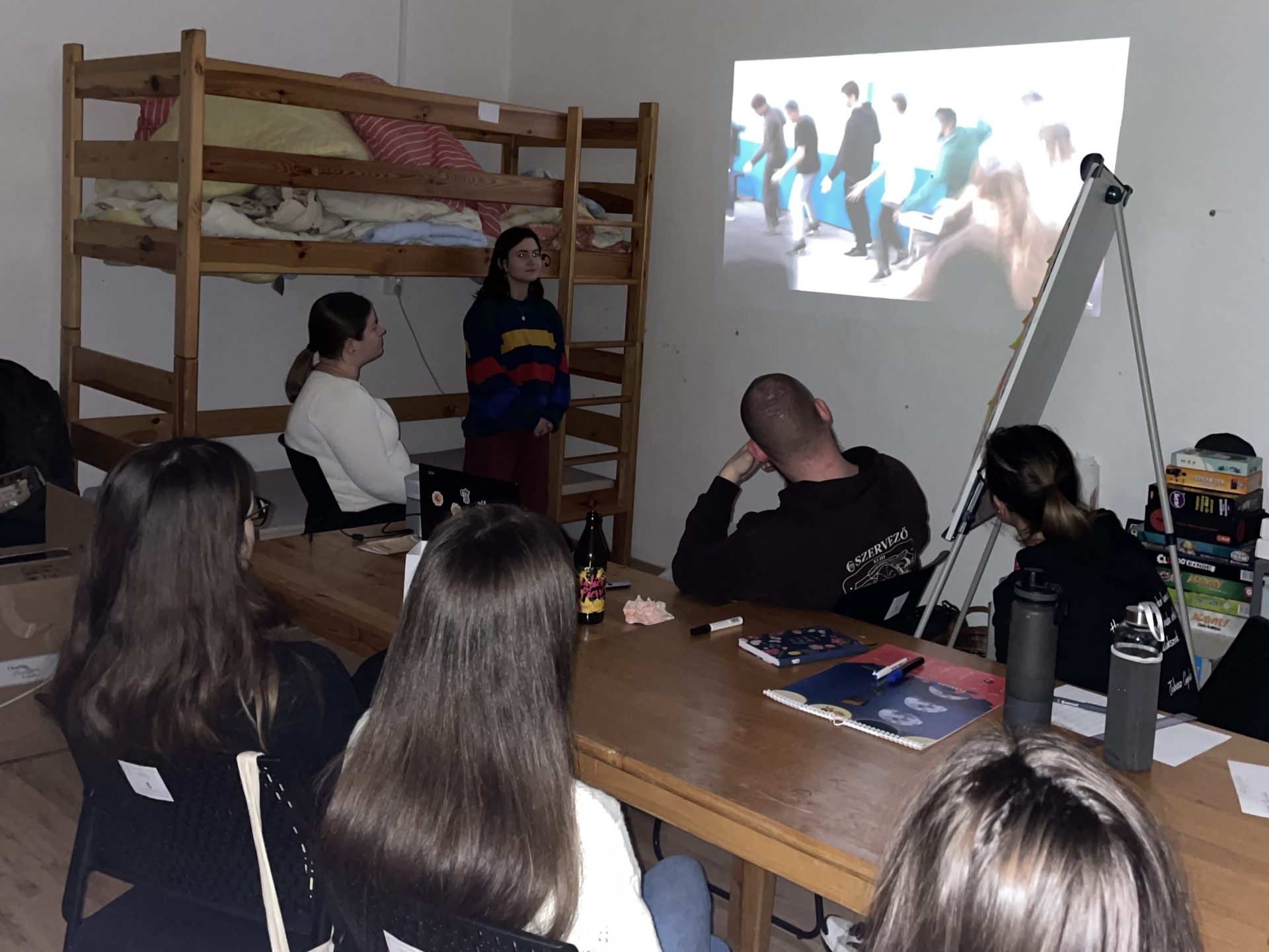 Mara Pataki and Boglárka Gecso gathered 12 friends at their university dorm to present the activity. They showed the final movie, shared details about the program and activities, and talked about their personal experiences in a relaxed and engaging setting.
