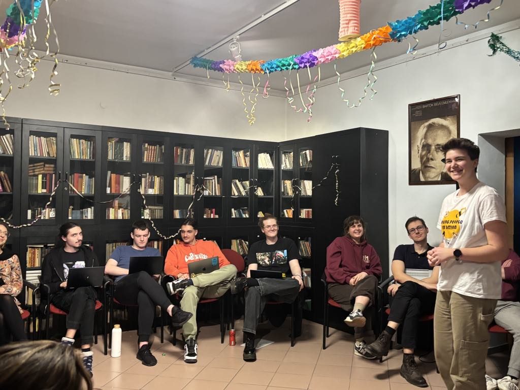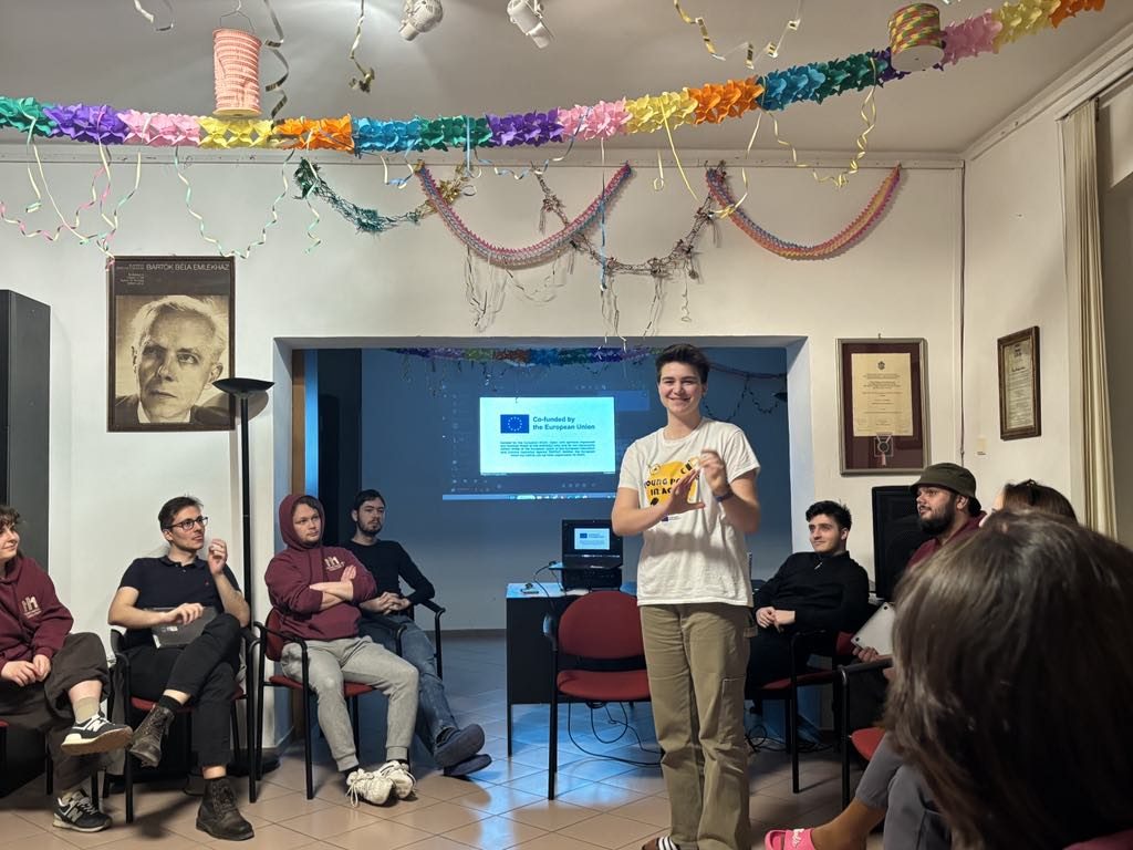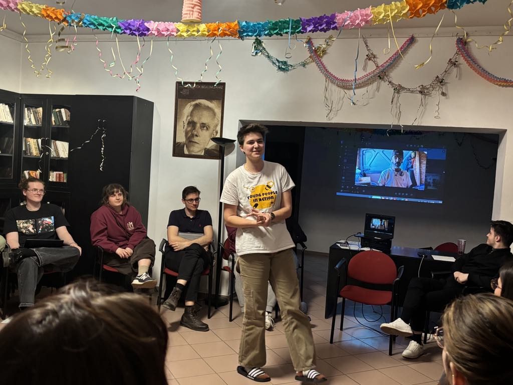 Luca Soltésová presented the project’s final video to a group of 16 people and introduced them to Riccardo—the incredible person who inspired their documentary. During her talk, she encouraged everyone to explore a topic of their own interest and proposed an activity for the youth club to create their own documentary.